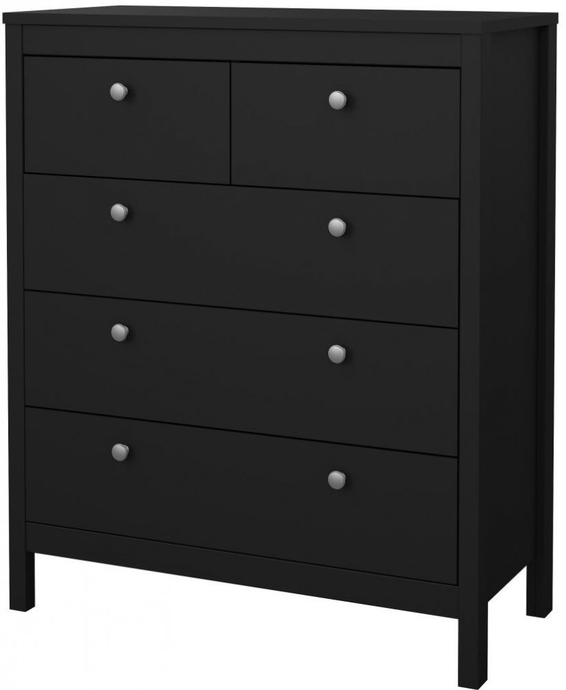 Barva: BíláDopravní a dodací údaje: Zásilková službaStav dodávky: V demontu, v krabiciMateriál: Reprodukované dřevo s dekorativní fóliíPodrobnosti o výrobku: Komoda - 2 malé zásuvky - 3 velké zásuvky - Vyměnitelné úchytyRozměry: 82,3 x 38,4 x 98,9 cm (ŠxHxV) Komoda ze série Madrid skvěle zapadne do všech interiérů. V balení najdete 2 typy úchytek, které jsou součástí balení. Tento detail dokáže rá...