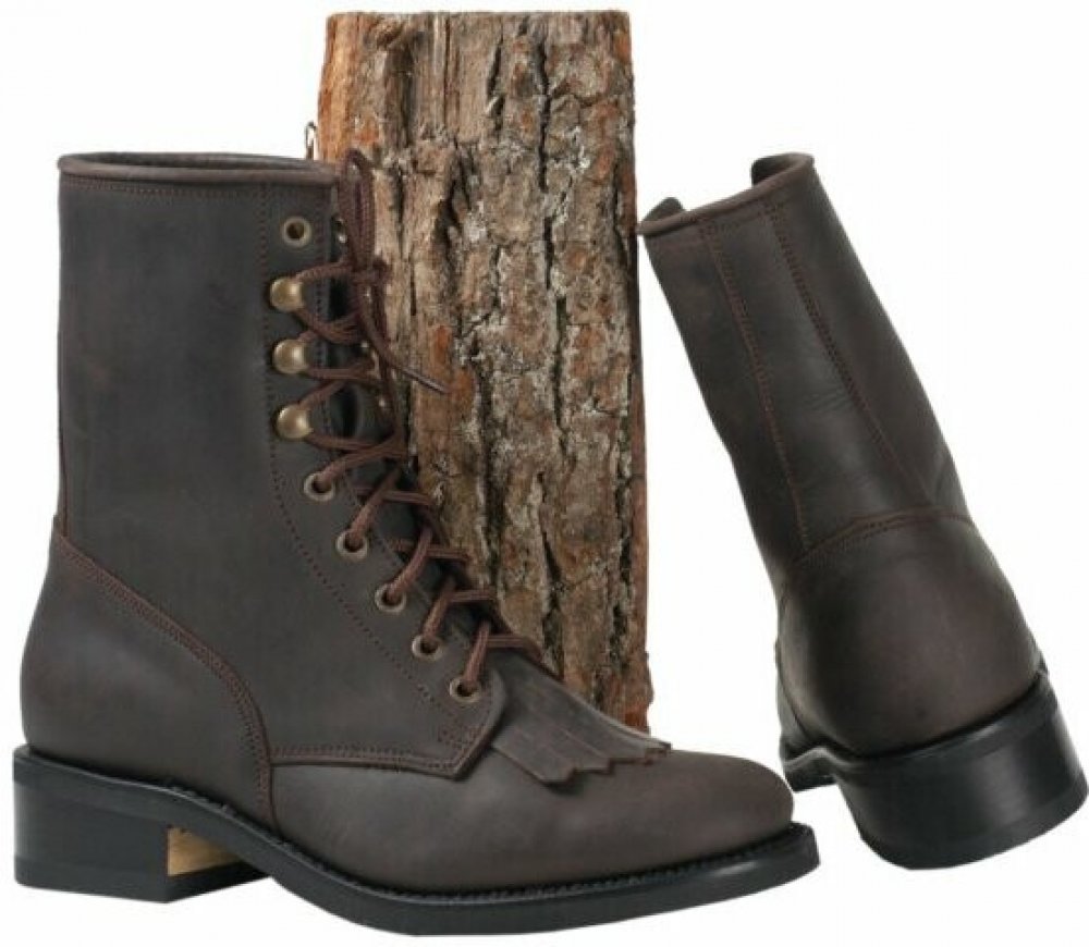 Kulatá špička je klasickým tvarem westernových jezdeckých bot. I muži s úzkou nohou budou s touto obuví spokojeni, protože kotníková bota díky šněrování skvěle drží na noze. Vícevrstvá struktura podešve, která se skládá z paty, podešve odolné proti oleji a kyselinám a mezipodešve tlumí nárazy.