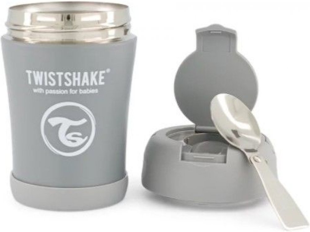 Nerezová termoska na jídlo značky Twistshake udržuje jídlo vašeho dítěte teplé nebo studené po dobu až 10 hodin. Termoska na jídlo je ideální, když jste na cestách. Součástí je i skládací nerezová lžička. Pro maximální tepelnou funkčnost naplňte termosku až po spodní okraj hrdla termosky. Bez BPA – bezpečné pro Vás i Vaše dítě. Včetně skládací lžičky. Objem 350 ml. Protiskluzový odnímatelný kryt dna zabraňuje klouzání výrobku. Vhodné pro děti od 6 měsíců. Termosku i víčko umývejte ručně. Víčko má rukojeť, která usnadňuje přenášení termosky. Teplé nebo studené Dvojitá nerezová stěna - udrží teplotu až po dobu 10 hodin Skládací nerezová lžička uschovaná ve víčku