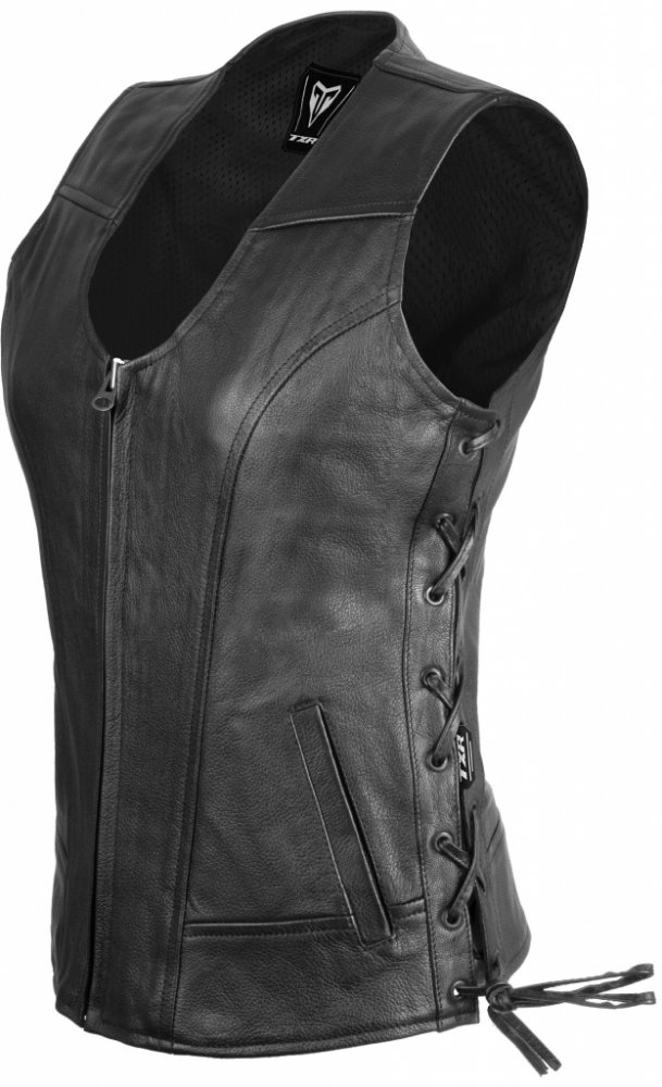 Dámská kožená vesta na motorku TXR Roxy si Vás získá díky nejemnější kozí kůži o síle 1 - 1,1 mm. Její mesh podšívka ze 100% polyesteru Vám zaručí ideální cirkulaci vzduchu. Zapínání je zajištěno pomocí YKK zipů. Stylové šněrování na bocích zajistí snadnou regulaci velikosti. Součástí jsou dvě vnější a jedna vnitřní kapsa. Elegantní a do detailu zpracovaná vesta která podtrhne krásnou dámskou post...