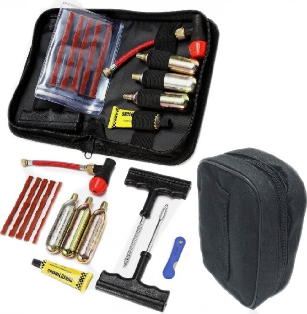 Tato vysoce kvalitní sada pro opravu pneumatik je nezbytným pomocníkem pro řidiče skútrů, čtyřkolek, motocyklů a automobilů. Její kompaktní rozměry 17 cm × 10 cm × 5 cm umožňují snadné uložení pod sedadlo motorky nebo do malého pouzdra. Sada obsahuje vše potřebné pro efektivní a rychlou opravu bezdušových pneumatik. Obsah sady TXR Sada na opravu pneu3× 16 g bombička CO2 (stoupání závitu 3/8" / 24 ...