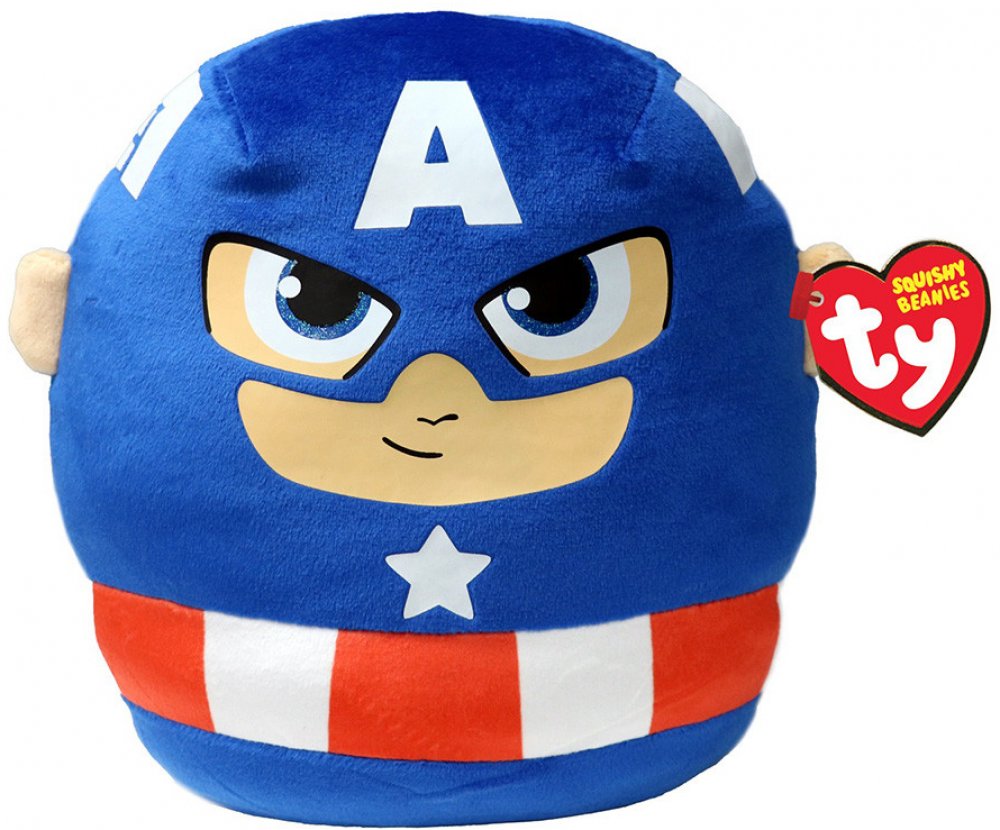 Ty Marvel Captain America Squish a Boo 31cm S Ty Marvel Captain America Squish a Boo 31cm se nyní můžete mazlit se svým oblíbeným hrdinou z komiksů Tento roztomilý plyšák má charakteristické barvy a symboly Kapitána Ameriky a je ideální na mazlení a hraní. Squish a Boo měří 31 cm a je vyroben z kvalitního, měkkého materiálu, který je příjemný na dotek. Ať už jako sběratelský předmět nebo jako hrač...