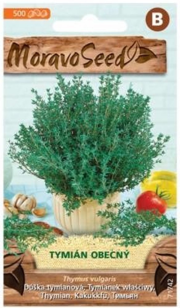 Tymián obecný 0,2 g Populární trvalka vysoká 40 cm. Sklízí se nať, která se seřezává 2 až 3 krát ročně vždy před plným rozkvětem. Používá se čerstvý i sušený jako samostatné koření i do kořeninových směsí. Koření je skvělé pro dochucení nádivek, polévek a omáček a výborné s drůbežím masem a rybami.