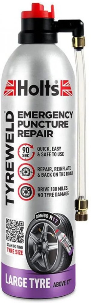 Tyreweld – opravný defekt sprej pro rychlé nouzové opravy pneumatik na cestách. Okamžitě opraví defekt bezdušové pneumatiky až do velikosti 5 mm a zároveň nahustí pneu za několik sekund. Určeno především na standardní pneumatiky. Nešpoškozuje senzory tlaku TPMS. Vhodné i proti pomalému úniku vzduchu.