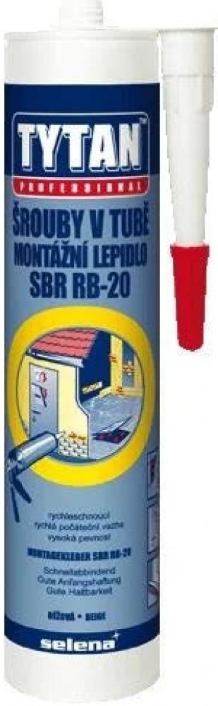 TYTAN RB-20 šrouby v tubě montážní lepidlo 310 ml je univerzální lepidlo na bázi kaučuku určené pro lepení běžných materiálů během dokončovacích prací nebo renovací. Výrobek vykazuje vynikající přilnavost k betonu, cihlám, dřevu, omítce. Výhody Tvoří silné, trvanlivé a stálé spoje Vynikající přilnavost ke stavebním povrchům Interní a externí použití Jednoduchá aplikace Vhodné pro polystyren Lze le...