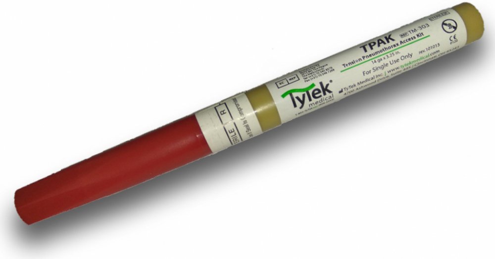 Dekompresní jehla TPAK Tytek 14G x 3,25 od společnosti TyTek Medical je určena pro punkci tenzního pneumotoraxu. Při punkci tenzního pneumothoraxu se nedoporučuje používat standardní i.v. katetr, pro jeho nedostatečnou délku. Plastové pouzdro jehly má tvar šestihranu, který zabezpečí, že jehla nebude klouzat mezi prsty a při práci zůstane na svém místě.