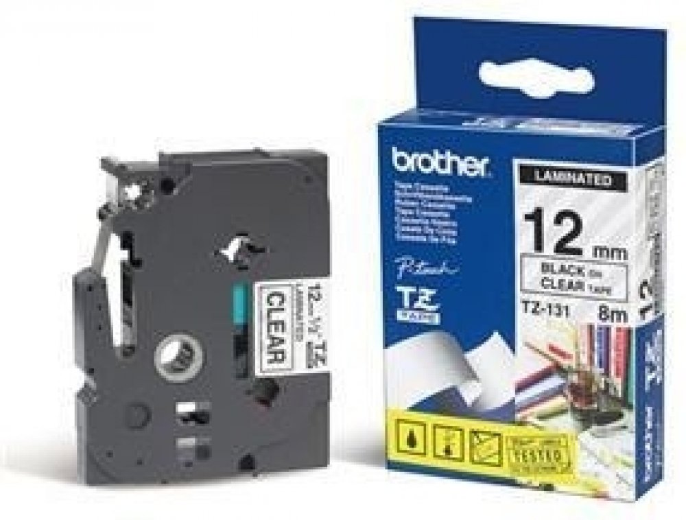Originální páska Brother TZe-131, 12 mm, laminovaná průhledná páska / černý tisk, výtěžnost 8 m. Pro tiskárny Brother P-touch 18R, PT-18R, P-touch 300, PT-300, P-touch 550, PT-550, P-touch 900, PT-900, P-touch 1000, PT-1000, P-touch 1010, PT-1010, P-touch 1080, PT-1080, P-touch 1090, PT-1090, P-touch 1230PC, PT-1230PC, P-touch 1260, PT-1260, P-touch 1280, PT-1280, P-touch 1830, PT-1830, P-touch 1950, PT-1950, P-touch 2030, PT-2030, P-touch 2100, PT-2100, P-touch 2420PC, PT-2420PC, P-touch 2430PC, PT-2430PC, P-touch 2450DX, PT-2450DX, P-touch 2460, PT-2460, P-touch 2470, PT-2470, P-touch 2480, PT-2480, P-touch 2500PC, PT-2500PC, P-touch 2700, PT-2700, P-touch 2730, PT-2730, P-touch 3600, PT-3600, P-touch 7100, PT-7100, P-touch 7500, PT-7500, P-touch 7600, PT-7600, P-touch 9200DX, PT-9200DX, P-touch 9200PC, PT-9200PC, P-touch 9400, PT-9400, P-touch 9500PC, PT-9500PC, P-touch 9600, PT-9600, P-touch 9700PC, PT-9700PC, P-touch 9800PCN, PT-9800PCN, P-touch D200, PT-D200, P-touch D200BW, PT-D200BW, P-touch D200VP, PT-D200VP, P-touch D210, PT-D210, P-touch D210VP, PT-D210VP, P-touch D400, PT-D400, P-touch D410, PT-D410, P-touch D410VP, PT-D410VP, P-touch D450, PT-D450, P-touch D450VP, PT-D450VP, P-touch D600, PT-D600, P-touch D600VP, PT-D600VP, P-touch D800W, PT-D800W, P-touch E100, PT-E100, P-touch E100VP, PT-E100VP, P-touch E110, PT-E110, P-touch E110VP, PT-E110VP, P-touch E300, PT-E300, P-touch E300VP, PT-E300VP, P-touch E550W, PT-E550W, P-touch E550WSP, PT-E550WSP, P-touch E550WVP, PT-E550WVP, P-touch E720BT, P-touch E920BT, P-touch GL200, PT-GL200, P-touch H75, PT-H75, P-touch H100, PT-H100, P-touch H105, PT-H105, P-touch H105WB, PT-H105WB, P-touch H107, PT-H107, P-touch H110, PT-H110, P-touch H300, PT-H300, P-touch H500, PT-H500, P-touch P700, PT-P700, P-touch P750TDI, PT-P750TDI, P-touch P750W, PT-P750W, P-touch P900W, PT-P900W, P-touch P900Wc, PT-P900Wc, P-touch P950NW, PT-P950NW, PT-P300BT, PT-P710BT, PT-P910BT