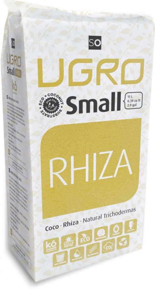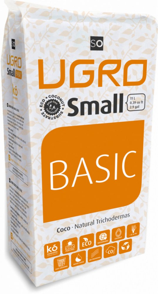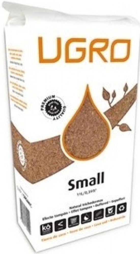 UGro Small je 750 gramů vážící cihla z lisované rašeliny a dehydratovaného kokosu z malých částic s nízkým procentem vláken. Zalitím pouze 3 litry vody se získá až 11 litrů vysoce kvalitního kokosového media. Coco substrát se získává drcením a zpracováním slupek kokosových ořechů a může být použit jako alternativní možnost k více tradičním substrátům. Nabízí vynikající zadržování vody a provzdušnění.Tyto vlastnosti pomáhají kořenovému systému a rostlina tak roste rychleji. Je to biologicky rozložitelná organická hmota s přírodní trichodermou, mikroorganismem, který bojuje s kořenovou hnilobou a stimuluje růst Vašich rostlin.