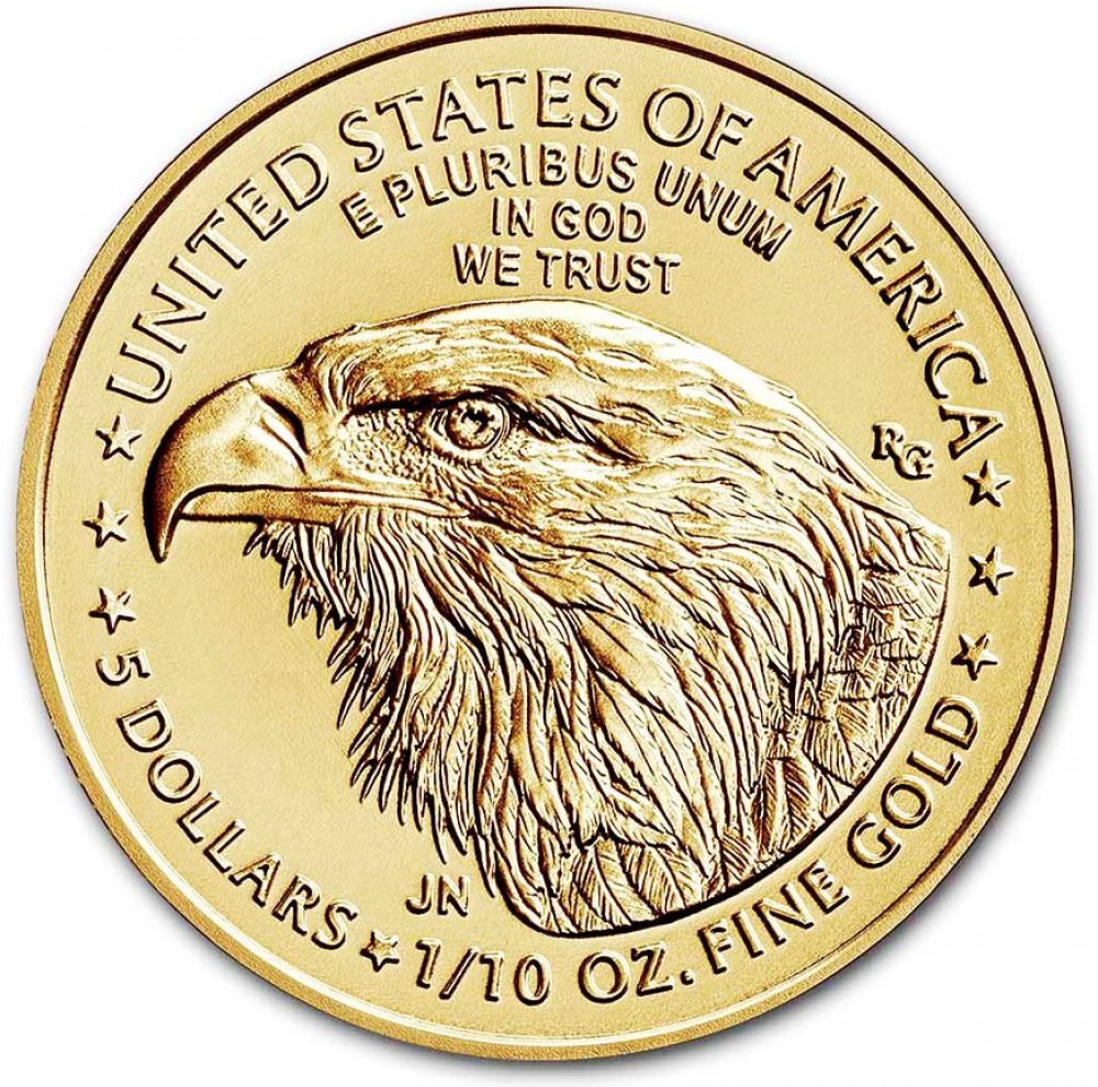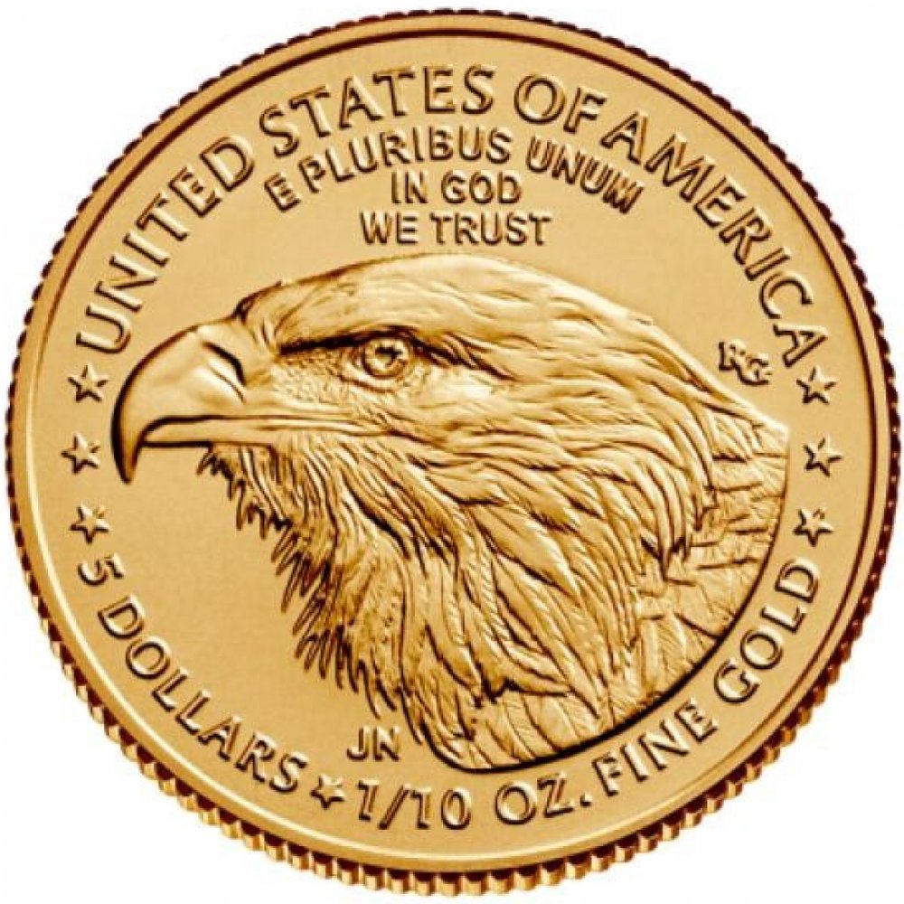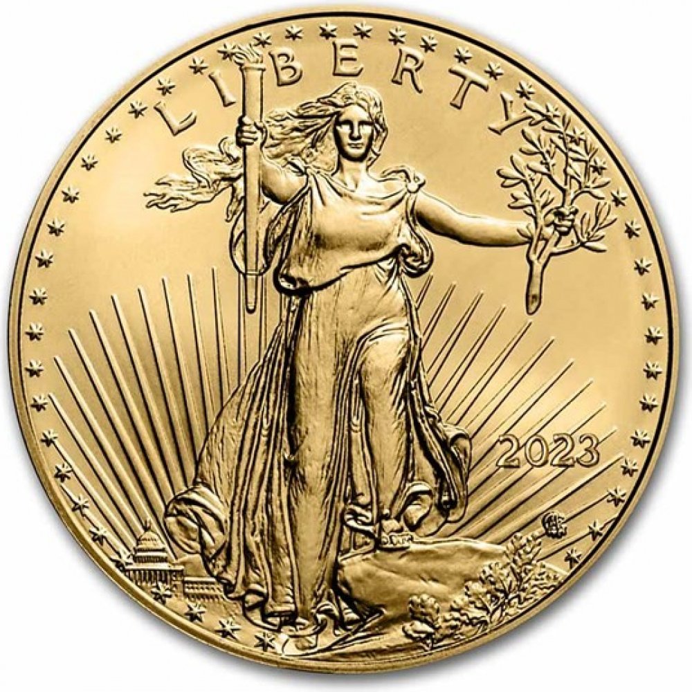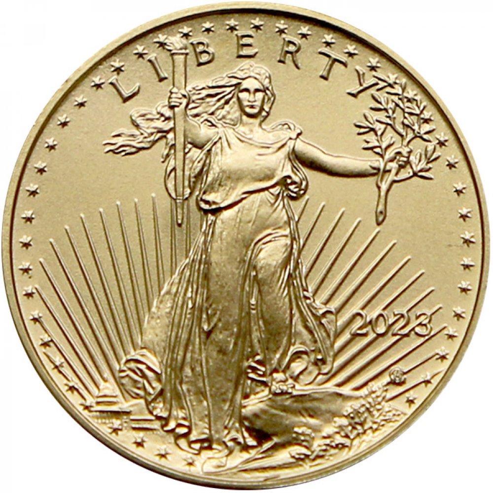 Do mincí je kvůli vyšší odolnosti proti opotřebení přidáváno stříbro a měď. Z tohoto důvodu mince neváží 31,1 gramů, ale 33,9 gramů. V každé minci je tedy vždy jedna trojská unce zlata a příměs stříbra a mědi je navíc. Na lícové straně má mince vyobrazenu postavu kráčející Svobody s vlajícími vlasy a pochodní v pravé ruce. Na rubové straně byl vyobrazen orel snášející se do svého hnízda k orlici s mláďaty. V roce 2021 byla rubová strana mince změněna a u nových mincí je vyobrazena hlava orla bělohlavého. Vyražená nominální hodnota mince je 50 dolarů. Nominální hodnota však nemá nic společného s tržní cenou. Tržní cena se odvíjí výhradně od ceny zlata na světových trzích.