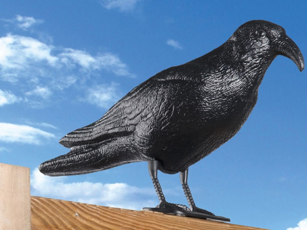 Maketa havrana ochrání vaše záhonky a ovocné stromy před nálety nezvaného ptactva! Jednoduše ji umístěte ke stromu, do záhonku či na balkon a užívejte si klidu a úrody. Havrana lze postavit, zavěsit anebo umístit na tyč. Materiál: plast Rozměry: 40 x 13 x 20 cm