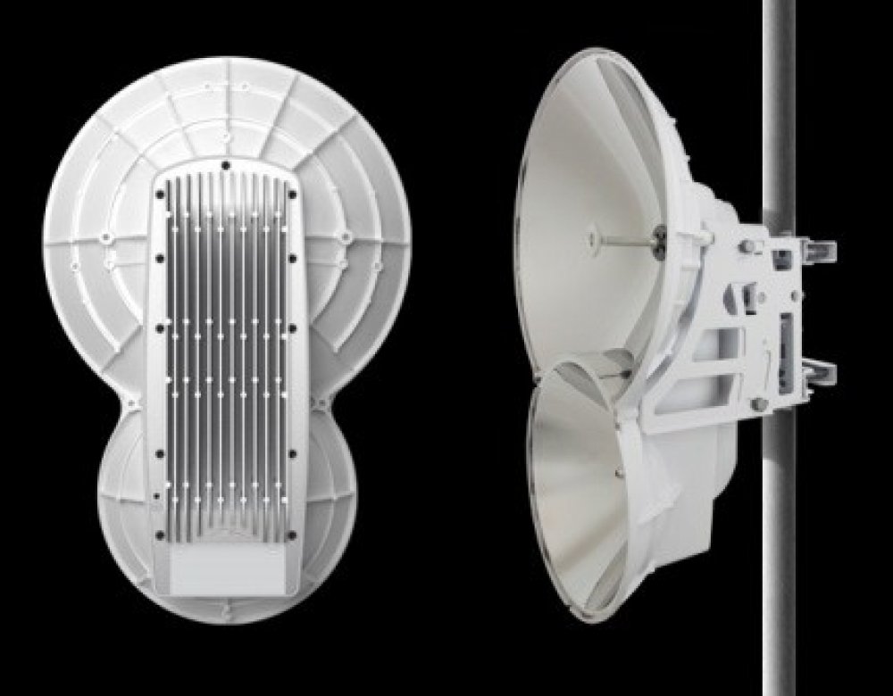 Radiový spoj Ubiquiti airFiber AF-24 určený pro volné pásmo 24 GHz s propustností až 1,4 Gbps při maximální modulaci 64QAM.