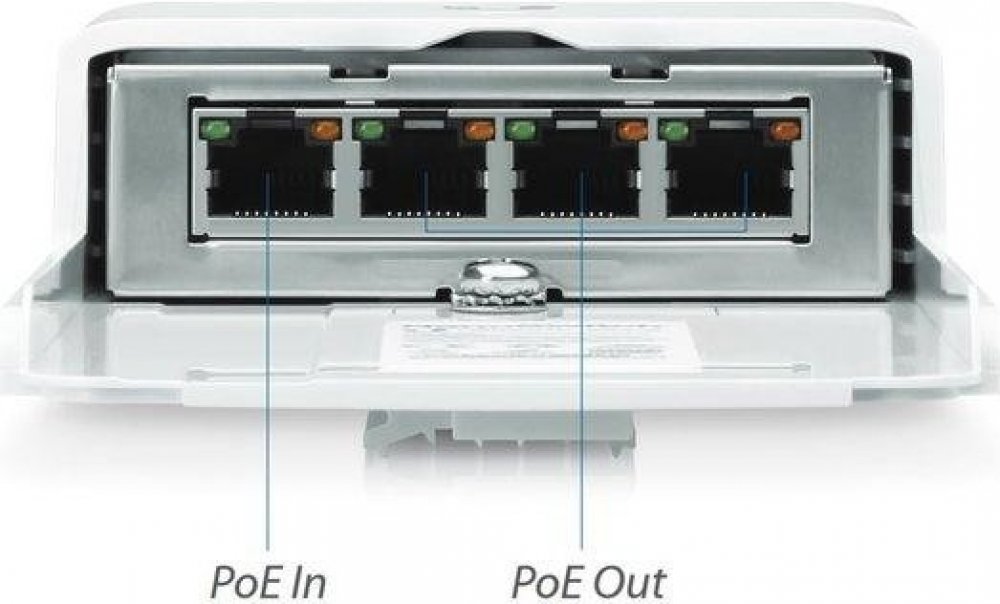 NanoSwitch je 4portový Gigabitový venkovní switch s podporou pasivního PoE napájení 24 V pro napájení dalších 2-3 zařízení na stožáru. Kompaktní all-in one provedení redukuje náklady na PoE injektory a další kabeláž.