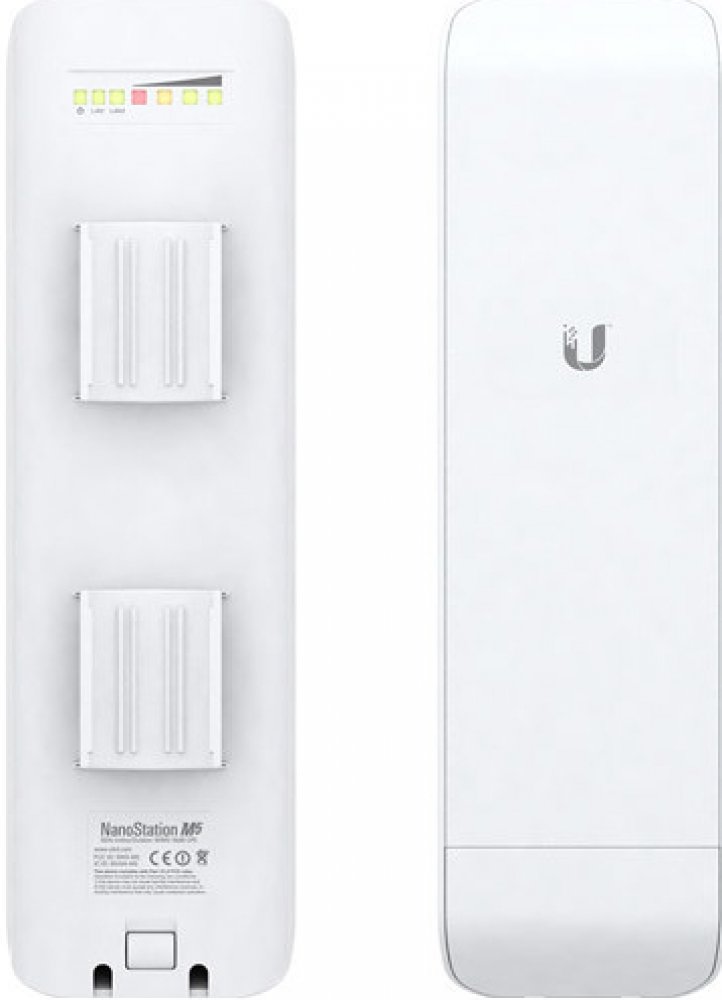 Nanostation M5 disponuje proti verzi "locoM5" dvěma ethernet.porty a výkonnější anténou se ziskem 16dBi. Můžeme tak k jednotce například připojit IP kameru. Díky možnosti distribuce PoE napájení i na tento port není nutné instalovat dva samostatné PoE adaptéry. PoE na druhém portu lze softwarově vypínat/zapínat, lze tak případně vzdáleně restartovat připojené zařízení. PoE adaptér disponuje "RESET" tlačítkem pro uvedení jednotky do továrního nastavení případně TFTP režimu pro obnovu poškozeného firmware.