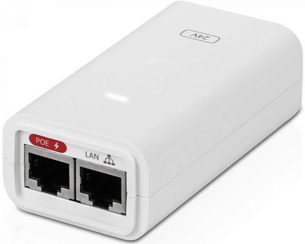 Velmi kvalitní, stabilizovaný PoE napájecí adaptér s uzemněním, indikační LED a výstupním napětím 24V a max.proudem 0.5A. Maximální výstupní výkon je 12W.
