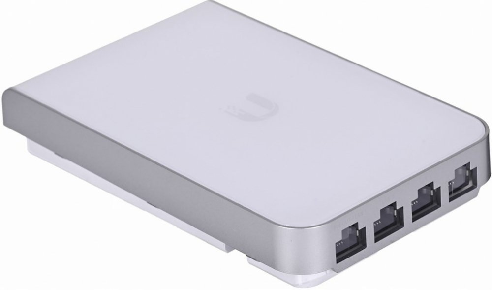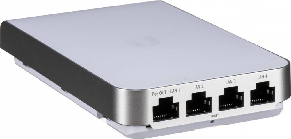 Zařízení je vybaveno také ethernetovým switchem, na spodní straně naleznete 4 Gigabitové ethernety, kdy na prvním portu je možné využít funkci PoE passthough. 1 přívodní Gigabitový port pak naleznete na zadní straně zabudované do zdi.
