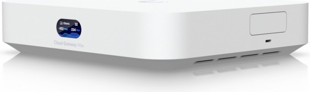 UCG-Max je všestranné zařízení ze série UniFi Cloud Gateway. Router disponuje (1) WAN 1/2.5Gbps portem a (4) LAN 1/2.5Gbps porty (1 s možností konfigurace LAN/WAN). Kompaktní, ale výkonné provedení tak podporuje funkci multi-WAN včetně možnosti load balancing, nechybí podpora IDS/IPS. Router má implementovanou podporu různých typů VPN, včetně site-to-site VPN.