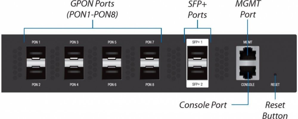 UFiber OLT obsahuje 8x GPON port, 2x 1G/10G SFP+ port, RJ45 port konzole a RJ45 port pro management. Váš klient se může připojit rychlostí až 2488 Gbps downstream a 1244 Gbps upstream.
