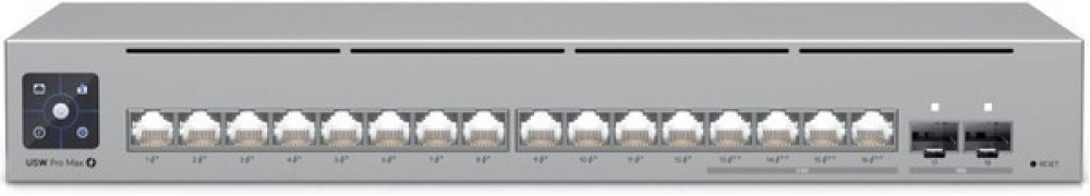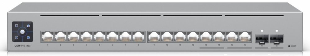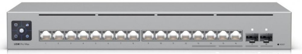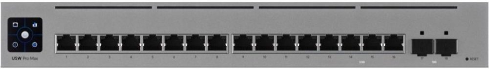 Ubiquiti Pro Max 16 je novým L3 switchem, který nabízí 4x 2.5 Gbps a 12x 1 Gbps porty. Pro připojení pomocí optického rozhraní jsou připraveny 2 SFP+ porty dosahující rychlosti až 10 Gb/s. Switch je napájen přes USB-C konektor 5V DC 25W.