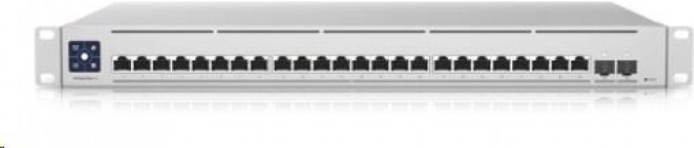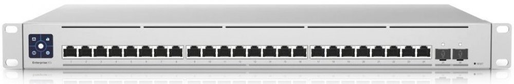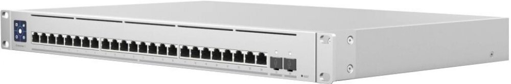 USW-EnterpriseXG-24 je plně managovatelný Gigabitový L3 switch s 24× 100M/1G/2.5G/5G/10G LAN porty a dvěma porty SFP28 s přenosovou rychlostí 1/10/25 Gbps. Switch má kromě standardní výbavy také 1,3" dotykovým displej pro poskytování informací o systému, teplotě, statistice portů a mnoho dalšího.