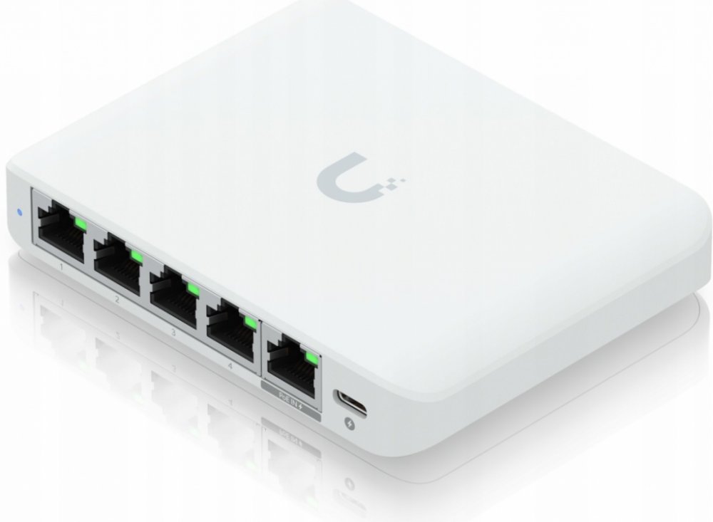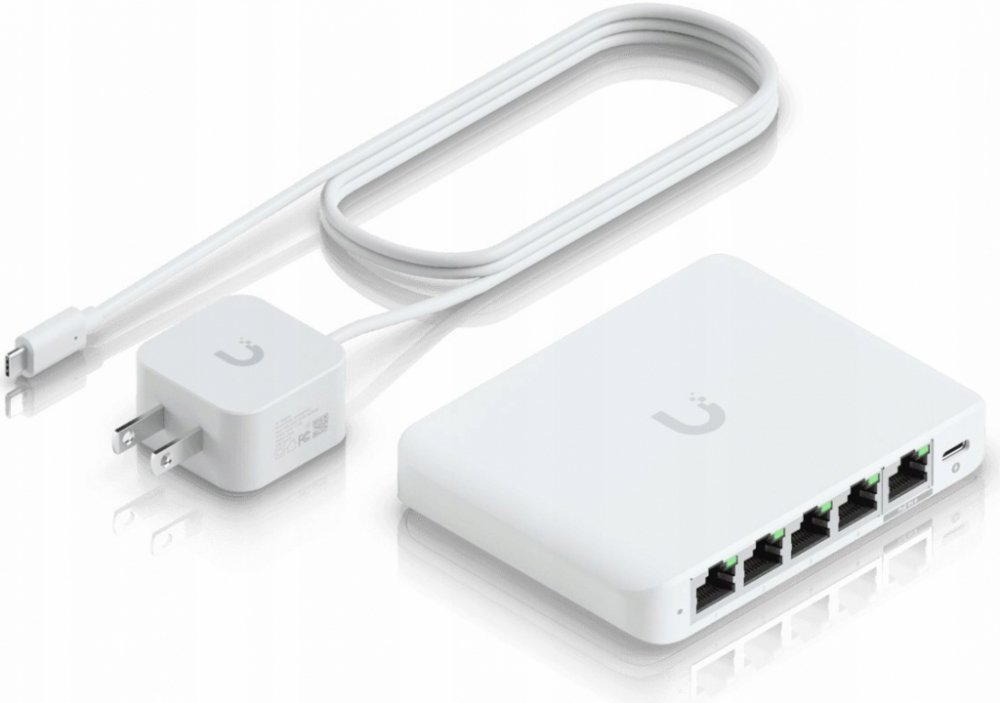 - Napájecí adaptér USB-C (5V / 1A)Switch Flex Mini 2.5G od Ubiquiti je kompaktní switch určený pro rozšíření sítě v domácích i kancelářských prostředích. Nabízí pět 2.5 Gigabitových portů, které umožňují snadnou integraci zařízení s vyššími přenosovými rychlostmi, jako jsou moderní přístupové body, servery nebo NAS úložiště. Switch podporuje správu prostřednictvím platformy UniFi Controller, což usnadňuje jeho konfiguraci a dohled nad sítí.