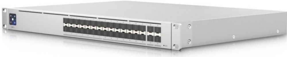 USW-Aggregation-Pro je plně managovatelný L3 switch v 19" rackmount šasi s 4× SFP28 (podpora 1G/10G/25Gbps) a 28× SFP+ (podpora 1G/10Gbps) porty.