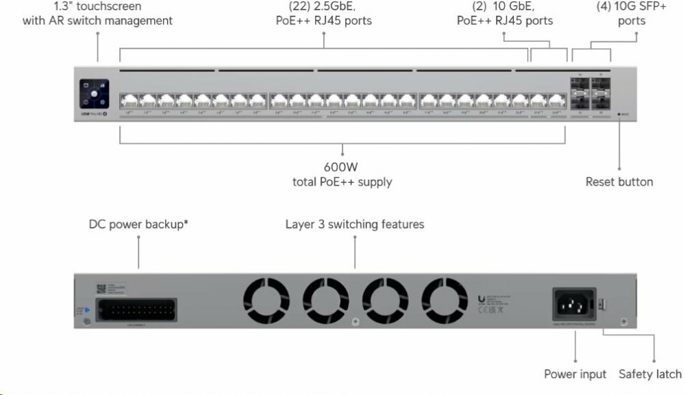 UniFi Switch (USW-Pro-HD-24) je spoľahlivý L3 switch s manažmentom v profesionálnom prevedení určený pre montáž do racku 1U.