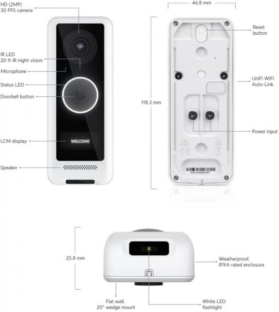 UniFi Protect G4 Doorbell je video zvonek s Wi-Fi, PIR senzorem, malým vestavěným displejem, mikrofonem a reproduktorem pro obousměrnou zvukovou komunikaci v reálném čase. Video má velmi kvalitní 5MP snímačem s vylepšeným nočním viděním a IR přísvitem. Výsledný obraz lze prohlížet v rozlišení 1600 x 1200 (2 MP) HD při 30 FPS. Zvonek UniFi Protect G4 obsahuje PIR senzor pro upozornění na okamžitou ...