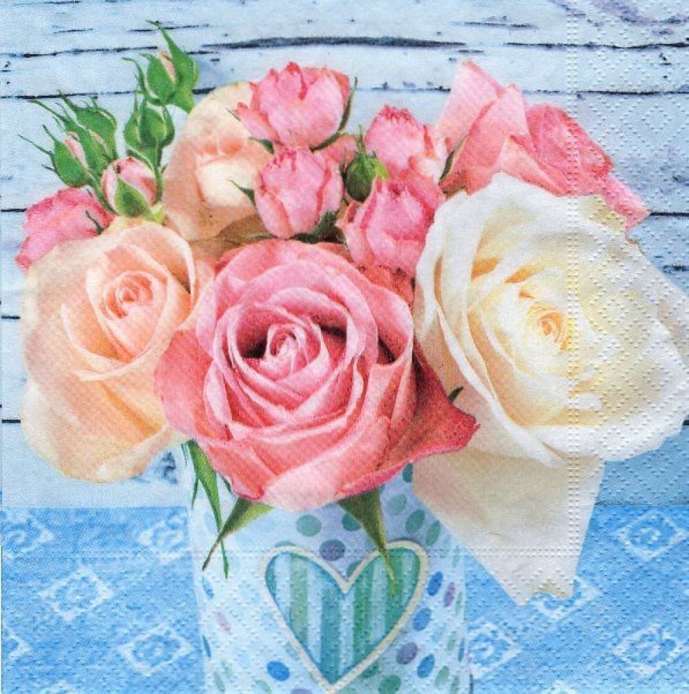 Ubrousek 33x33cm Růže s poupaty ve váze