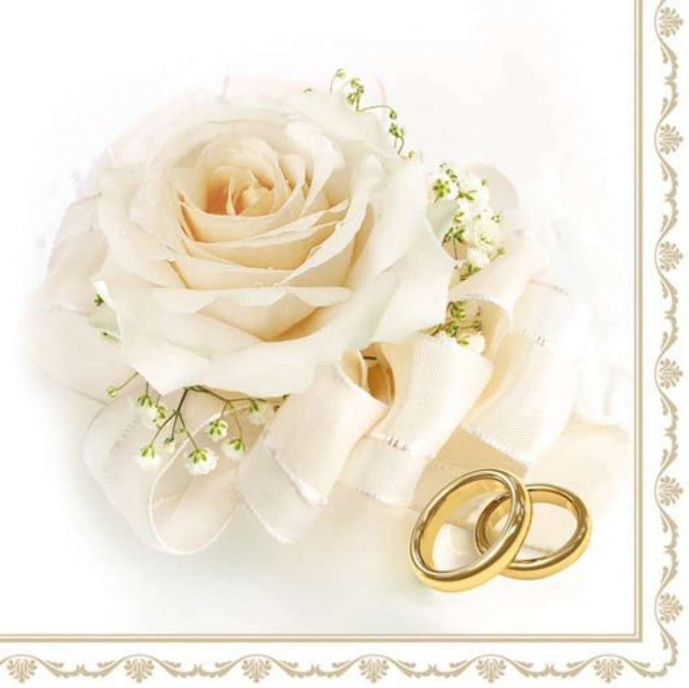 Papírový ubrousek: Svatební růže – 33 × 33 cm