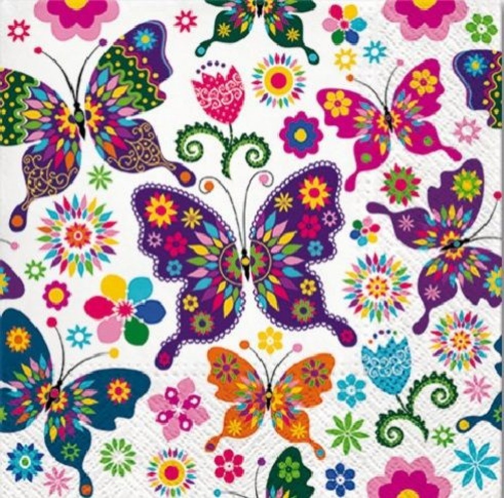 Papírové ubrousky, barevní motýli, decoupage, ubrousková technika, hobby tvoření