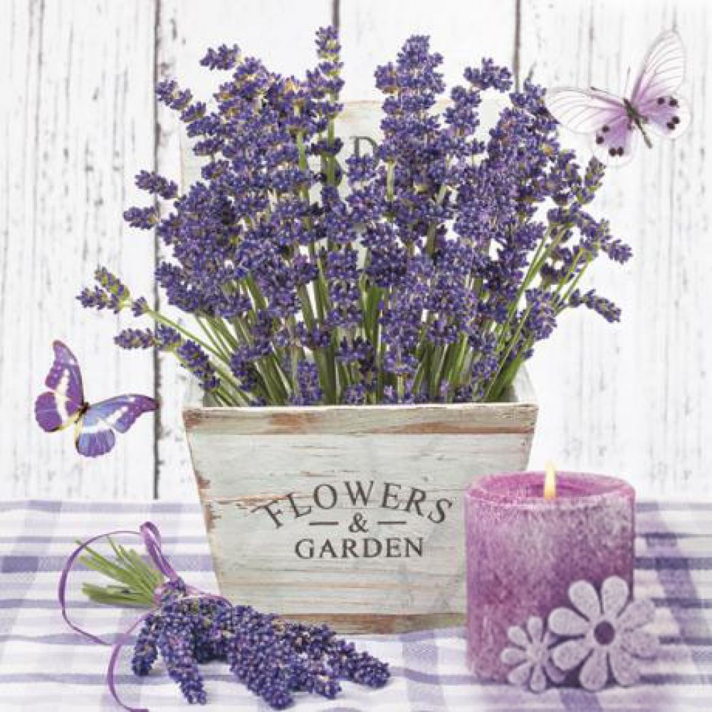 Ubrousky na dekupáž - Levandule v dřevěném košíku- 1ks