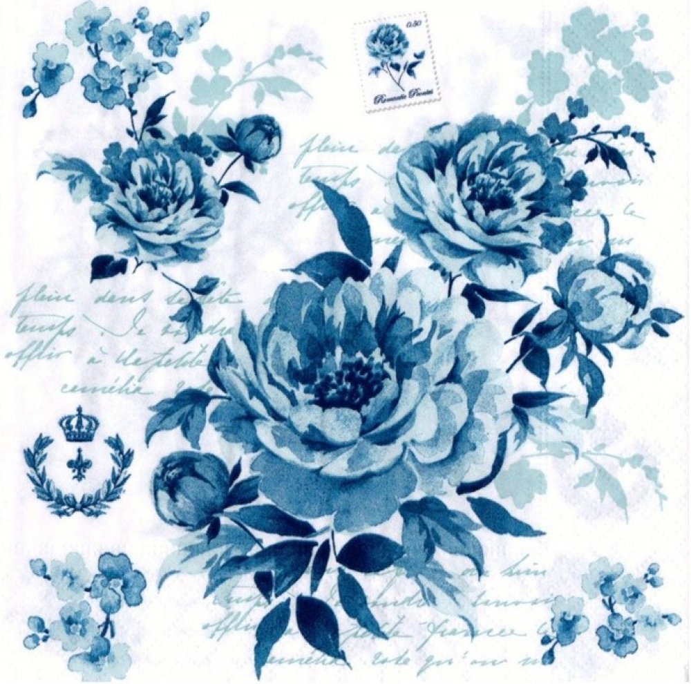 Ubrousky na dekupáž Romantic Flower Blue 1 ks