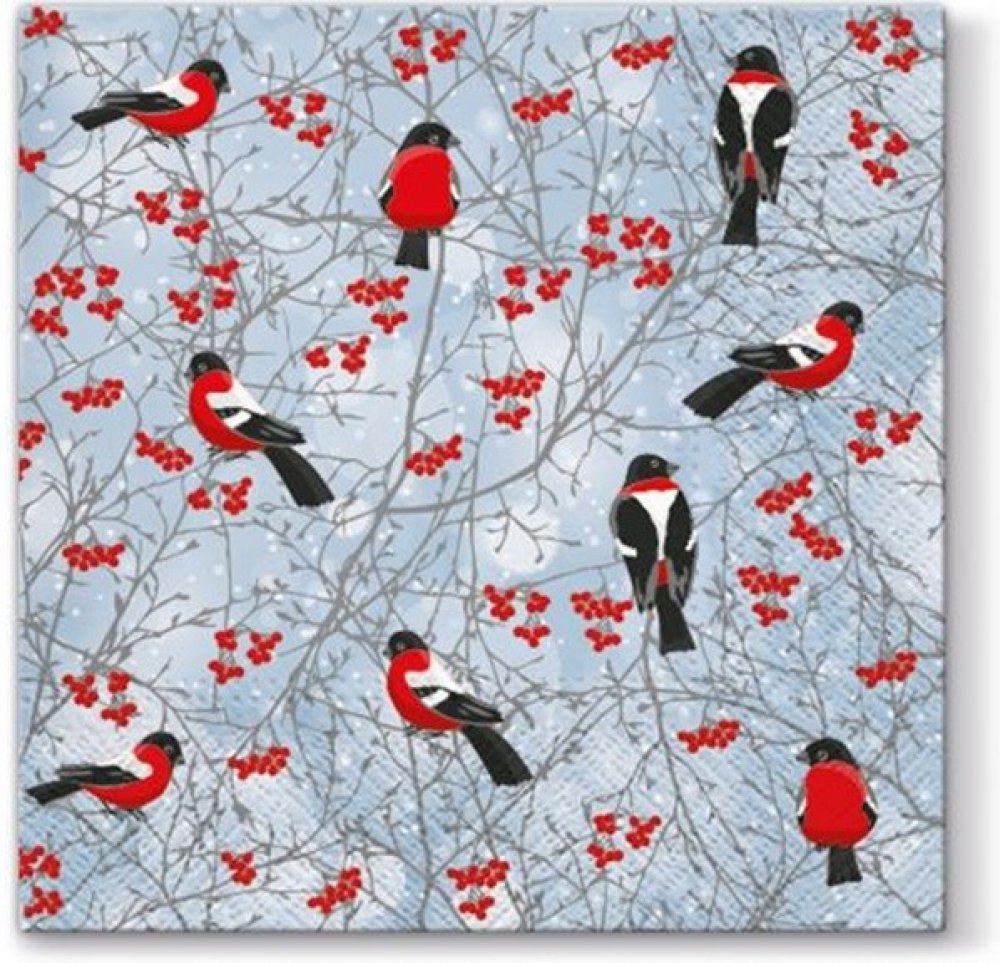 Ubrousky na dekupáž - Zimní ptáčky - 1 ks