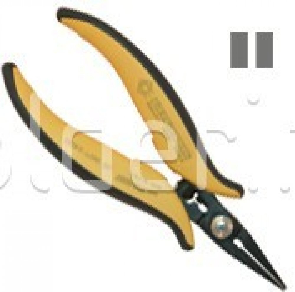 Vroubkované, ploché, dlouhé kleště určené pro manipulaci s komponentami ve špatně přístupných místech a tam, kde je zapotřebí silná přilnavost. Délka 154 mm. Hmotnost 100 g. Tloušťka oceli 5,0 mm. Tvrdost 48 - 50 HRC.