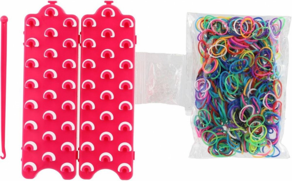 Tkalcovský stav na splétání gumiček mohou děti využít k výrobě náramků, gumiček do vlasů nebo třeba originální klíčenky. Vyrobit si mohou náramek v oblíbené barevné kombinaci nebo jej věnovat kamarádovi či kamarádce. Fantazii se meze nekladou. Splétání gumiček rozvíjí soustředění, představivost a trénuje manuální dovednost. Balení obsahuje: 600 ks silikonových gumiček různých barev třířadý tkalcov...