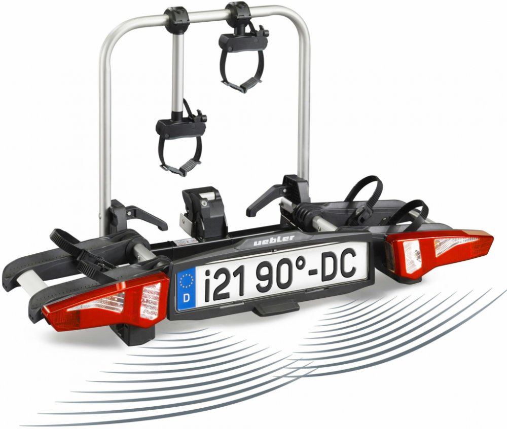 Nosič 2 jízdních kol Uebler i21 Z-DC 90° je luxusní variantou nosiče od prvotřídního německého výrobce UEBLER. Nosič lze během pár sekund složit a uložit jako běžné zavazadlo. Pro uchycení nosiče je nutno mít vůz vybaven tažným zařízením. Upínací mechanismus je oproti všem ostatním modelům Uebler inovován tak, že nemusíte dotahovat žádnou pákou, jen nosič položíte na TZ a rozevřete, čímž se automaticky fixuje. Mechanismus má i indikaci správného upnutí, aby se předešlo jakýmkoliv problémům. V kombinaci s nízkou váhou celého držáku, to dělá z nosiče Uebler i21 Z-DC 90° vskutku jedničku na trhu mezi nosiči jízdních kol na tažné zařízení. Vynikající pomůckou je integrovaný parkovací systém Distance Control (DC), který vás upozorní na případné překážky při couvání. Překážky jsou neomylně detekovány a signalizovány opticky i akusticky. Tento elektronický parkovací asistent se automaticky aktivuje při zařazení zpátečky a vypne se ve voze sériově instalovaná výstraha vzdálenosti. Zvláštní propojení kabelů s vozidlem není nutné. Displej přijímače se jednoduše zasune do zapalovače (zásuvka 12V) nebo do zásuvky na palubní desce. Nosič je vybaven 13-ti pólovou elektro zástrčkou, kterou lze na 7-mi pólovou změnit pomocí adaptéru viz. související zboží. Nosič je doporučen pro přepravu elektrokol i s robusními rámy až do průměru 115 mm pro kulatou trubku, 120x80mm pro obdélníkovou trubku nebo 95x95mm pro čtvercovou trubku. . Pozn.: Výklop na nový Mercedes Benz Vito s originálním pevným tažným stále nestačí.
