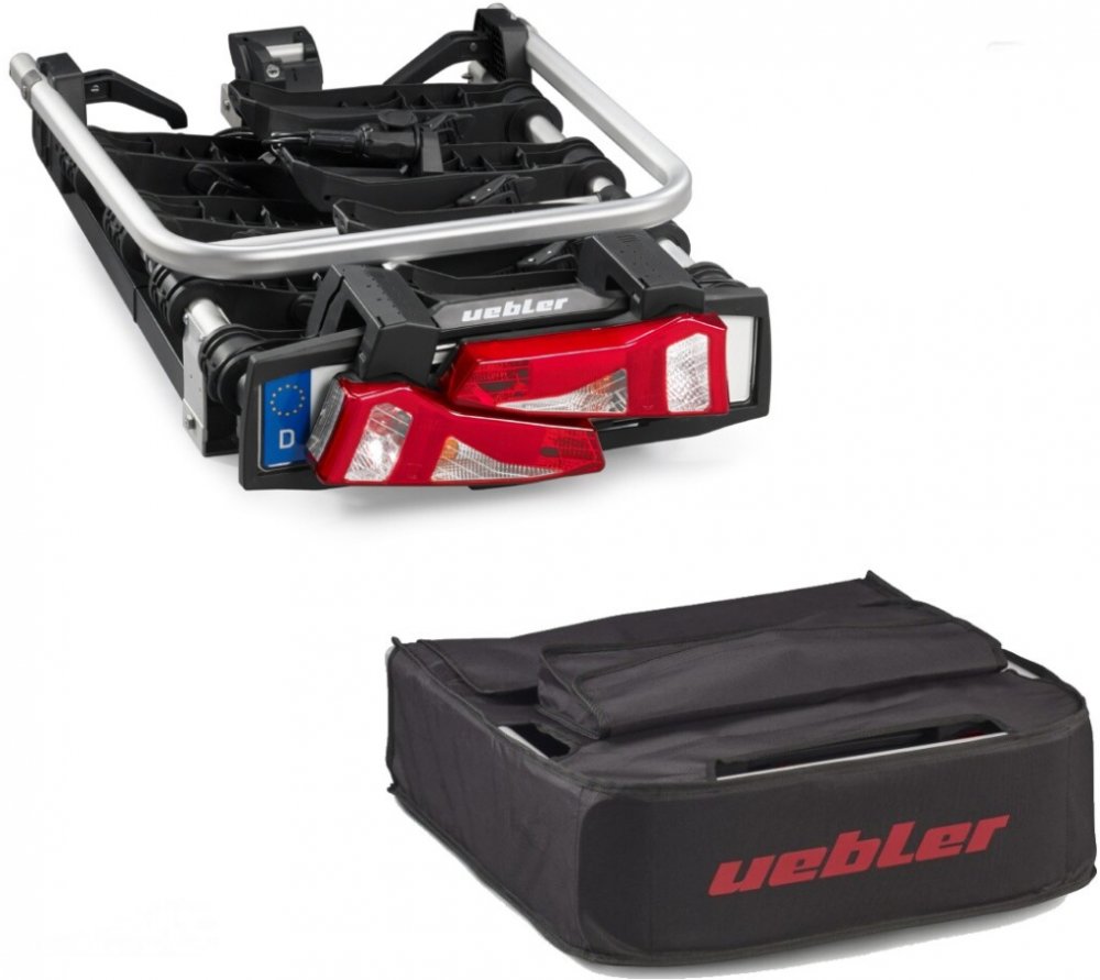 Nosič 4 jízdních kol Uebler i41 S skládací + transportní vak je nejskladnější alternativou nosiče od prvotřídního německého výrobce UEBLER poslouží také jako základna pro upevnění zadního boxu UEBLER B1 , který je možné zakoupit samostatně