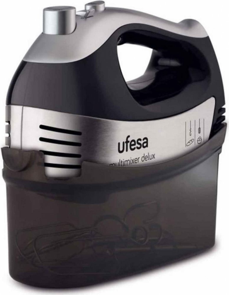 Užitečný ruční mixér Ufesa bez problémů zastane různé kuchyňské činnosti a zjednoduší vám práci při přípravě krémů, sněhu nebo těsta. Oceníte jeho kompaktní rozměry a intuitivně umístěné ovládací prvky. Je vybaven motorem o příkonu 500 W, který zaručí naprosto skvělé výsledky. Ufesa Multimixer Delux BV5650 potěší 5 rychlostmi, se kterými vytvoříte vždy ideální konzistenci zpracovávaných ingrediencí. Do výbavy mixéru také patří základna, hnětací metly a šlehací metly. Ruční mixér Ufesa představuje oblíbeného pomocníka pro přípravu různých druhů jídel. Zásadní vlastnosti ručního mixéru Ufesa Multimixer Delux BV5650 Ruční mixér Ufesa udělá radost všem kuchařům Připraví lahůdky v každé kuchyni díky hnětení a šlehání Skvělý sníh ušleháte díky ručnímu šlehači Ufesa Multimixer Delux BV5650 disponuje 5 rychlostmi Mixér disponuje mísou z plastu S bytelnou základnou Mísení surovin je pro šlehací a hnětací metly hračkou Pro vysunutí metel je připraveno praktické tlačítko Vychutnejte si čerstvě upečený koláč Ruční...