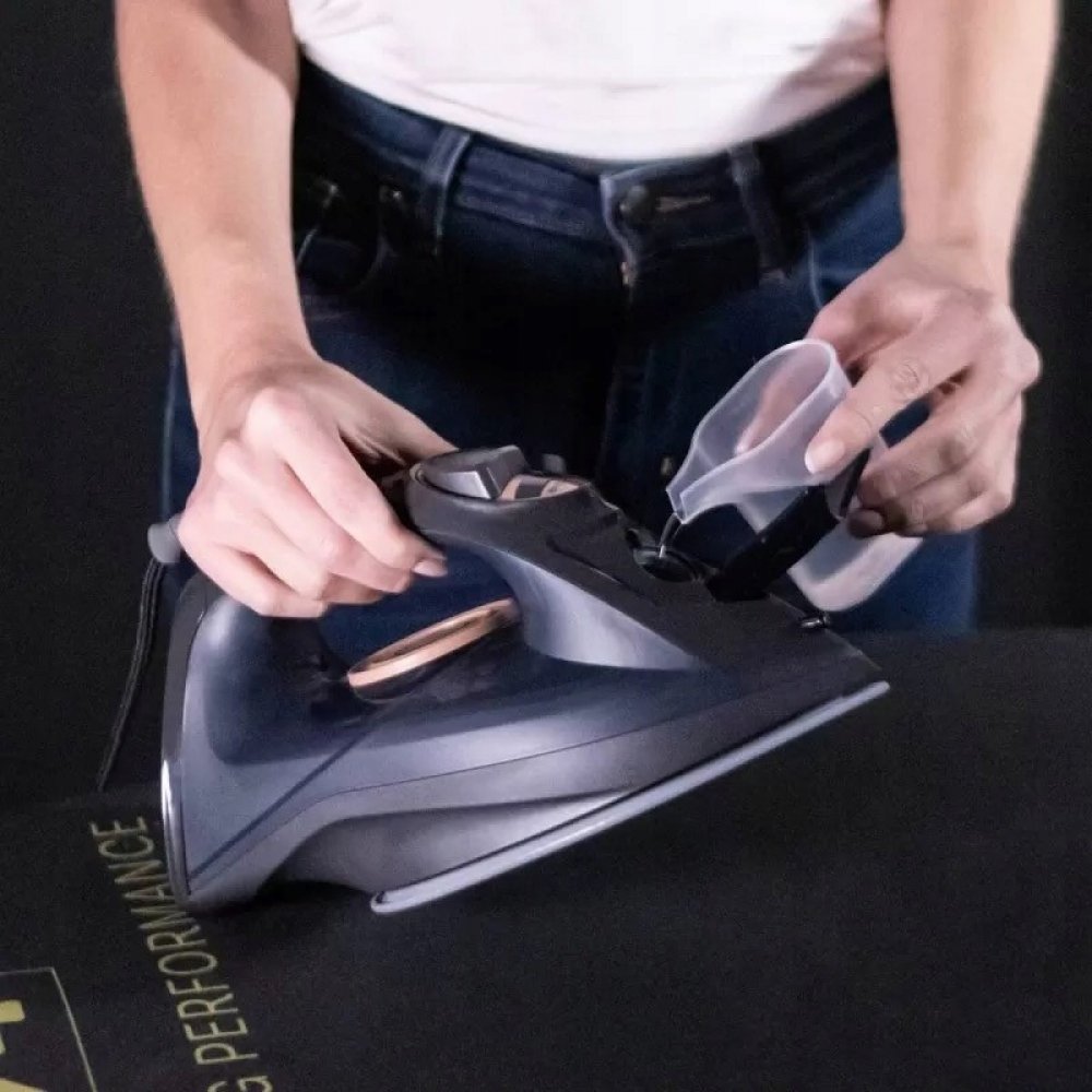Jeho ergonomický design je dokonale přizpůsobený přirozenému pohybu, ke kterému dochází během žehlení, zaručuje co nejpohodlnější žehlení