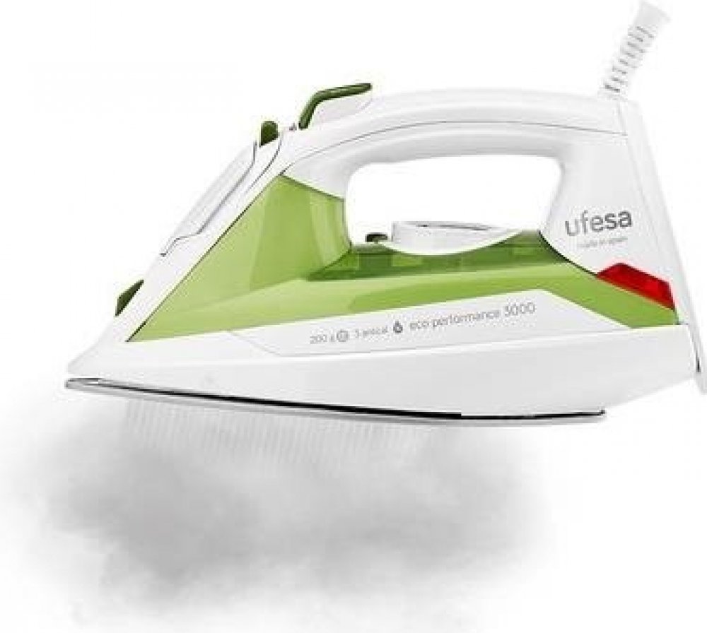 Pokud sháníte žehličku s napařováním, mohla by vám vyhovovat napařovací žehlička Ufesa. Výrobním materiálem žehlicí plochy je eloxon, což je elektrolytická oxidace hliníku. Patří mezi nejkvalitnější materiály, díky čemuž žehlička snadno klouže po všech typech tkanin. S příkonem celých 2400 W se svižně ohřeje na provozní teplotu a začne vyrábět páru. Žehlička je vybavena parním výkonem o síle 40 g/min, s nímž si snadno poradíte i s náročnějším prádlem na žehlení. V případě, že se stejně objeví pomačkané záhyby na šatech či obleku, stačí zapnout parní ráz, který je možné zvýšit až na 200 g/min. Žehlička disponuje nádobkou na vodu o objemu 320 ml. Pohodlnou manipulaci při žehlení má na starost 1,9m přívodní kabel. S žehličkou Ufesa rychle a efektivně vyhladíte pomačkaná místa a záhyby na vašem oblečení. Zásadní přednosti žehličky Ufesa ECO Performance Napařovací žehlička na prádlo Ufesa vám pomůže s narovnáním pokrčeného oblečení Její žehlicí plocha z materiálu Eloxon snadno klouže po všech typech tkanin...