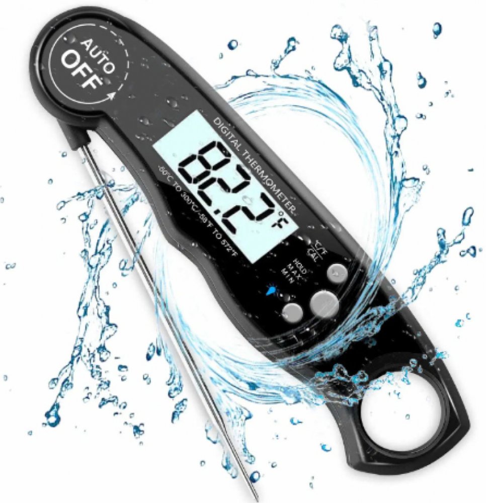 Přenosný skládací digitální teploměr na maso s okamžitým čtením teploty je ideální pro grilování, vaření, pečení, tekutiny, cukroví a fritézu. Jeho vynikající vlastnosti zahrnují ergonomický design pro pohodlnější manipulaci, odolnost proti vodě dle normy IP67 pro ochranu těla, úsporu energie s automatickým vypnutím po 10 minutách nečinnosti, podsvícení, které se rozsvítí po stisknutí tlačítka a udrží se po dobu 5 sekund, a paměťovou funkcí pro zapamatování volby teplotních jednotek (°C/°F) uživatelem. Záda jsou magnetická a pevně se přichytí.