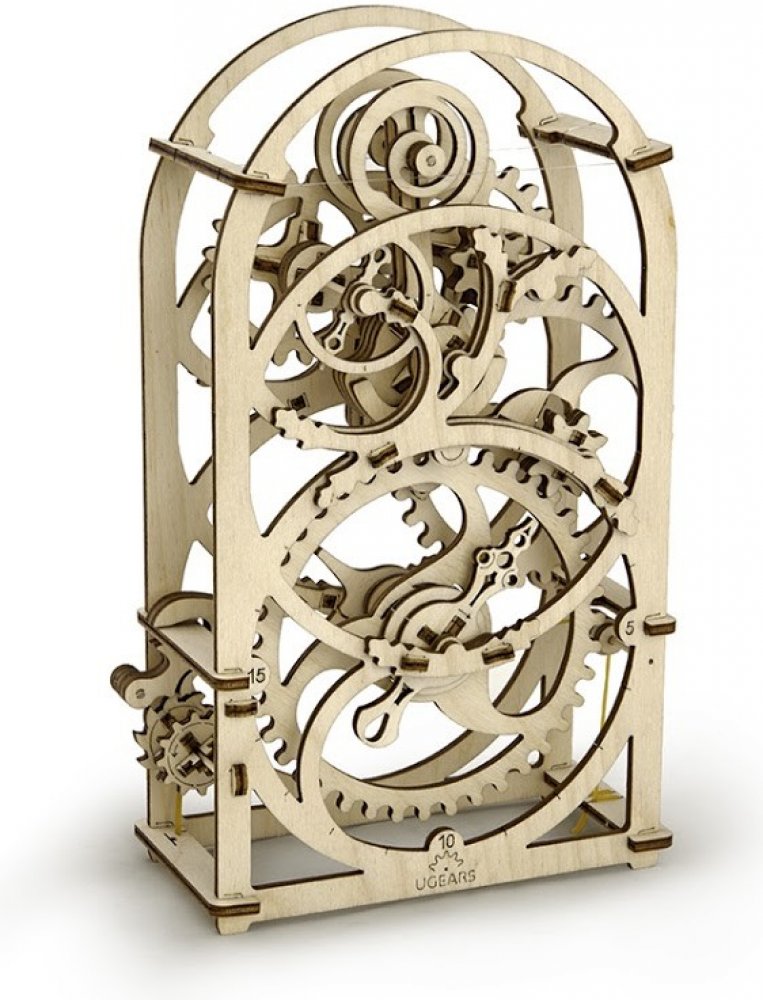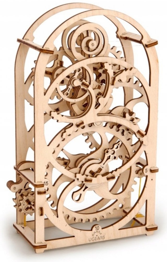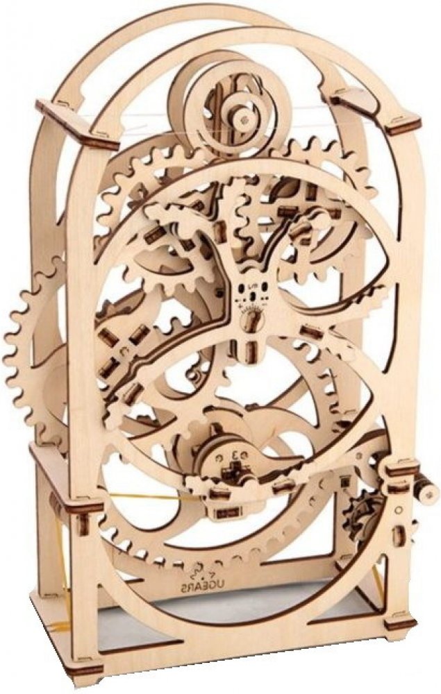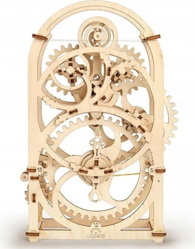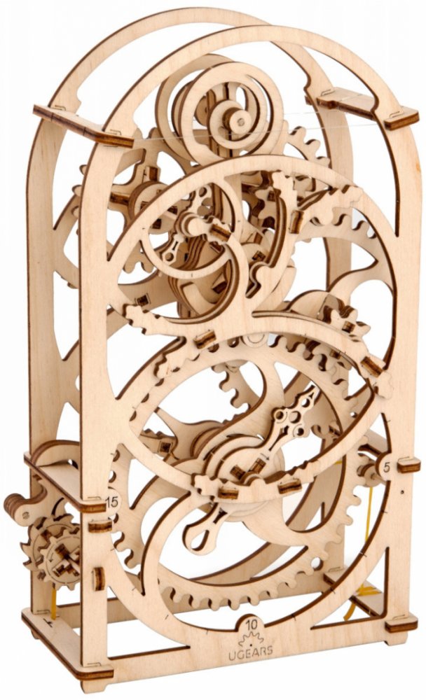 Ugears 3D dřevěné mechanické puzzle Hodinový strojek Stavebnice hodinového strojku, využitelného jako tzv. minutky, vyrobená z překližky. Na stroji podobou spřízněného s hodinami ve skleněných báních můžete obdivovat chod celého mechanismu. Snadno se necháte meditativně unést atraktivně zpracovaným kyvadélkem a jemným klapáním.