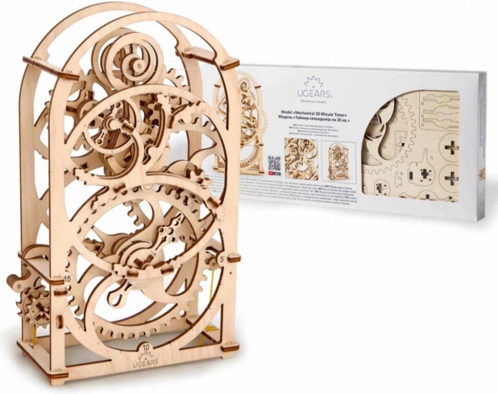 Vypršení nastaveného času je ohlášeno nenásilným zaklapnutím. Vybaveno detailním návodem k sestavení. Do detailu propracované dřevěné 3D skládačky ukrajinské značky UGEARS jsou vhodné nejen pro rozvoj motoriky a představivosti, ale jsou i neskutečně zábavné. Díky vysoké kvalitě výroby jsou při správné údržbě modely po sestavení plně funkční a pohyblivé, a umožňují tak lépe poznat tajemství mechaniky. Parametry: Rozměry modelu: 17,3 x 8 x 25,6 cm