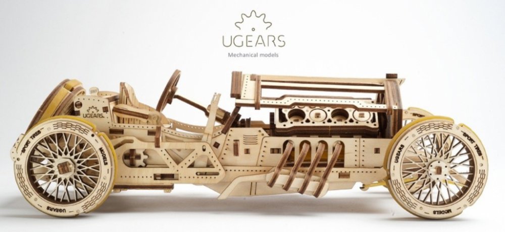 Ugears 3D dřevěné mechanické puzzle Auto U-9 Grand prix