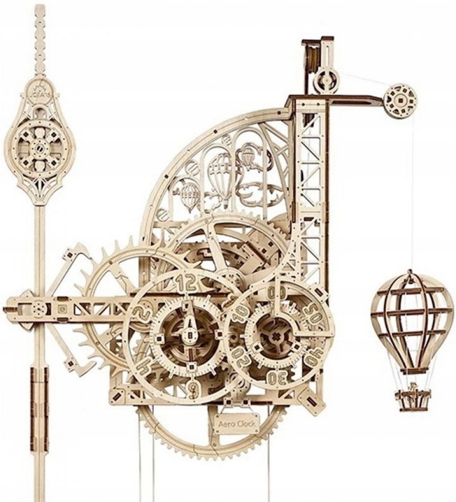 1x Ugears 3D dřevěné mechanické puzzle Nástěnné hodiny Aero