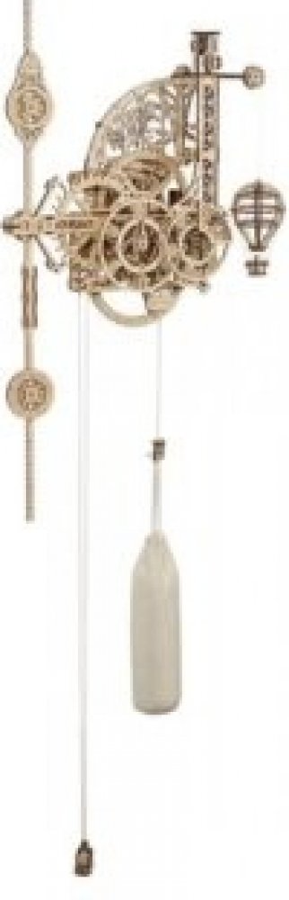 Sestavte si funkční hodiny s odhaleným hodinovým strojkem. Hodiny pracují díky mechanismu ladění rovnovážné polohy. Hlavní závaží v podobě plátěného sáčku (součást balení) naplníte pískem nebo solí. Pomocí závaží na kyvadlech a dalšího závaží regulujete rychlost poklesu modelu horkovzdušného balónu. Ten v průběhu času pomalu stoupá a každou celou hodinu vám oznámí svým poklesnutím. Přesný čas a nastavení ciferníků ovládáte mechanickou západkou.