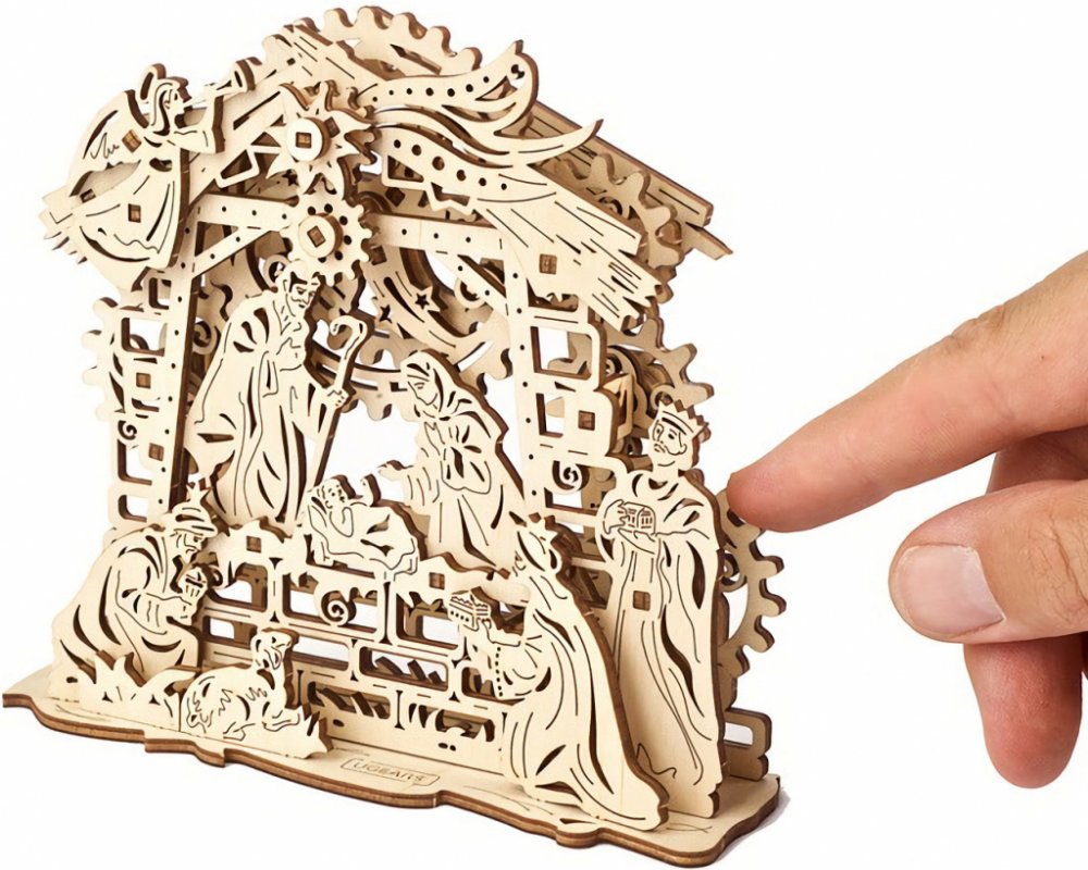 Dřevo a pohyb - jak to jde dohromady? Jednoduše! Mechanický pohyb a tradiční materiál spojují 3D modely UGEARS. Poznejte tajemství převodů, gumičkových motorů, koleček a dalších mechanických součástek! Zábavné skládání bez nutnosti lepení, propracované detaily, hladký provoz a kvalitní zpracování - plně funkční pohyblivé 3D puzzle UGEARS ohromí i toho, kdo neměl fyziku ve škole právě v oblibě. Do detailu propracované dřevěné 3D skládačky ukrajinské značky UGEARS jsou vhodné nejen pro rozvoj motoriky a představivosti, ale jsou i neskutečně zábavné. Díky vysoké kvalitě výroby jsou při správné údržbě modely po sestavení plně funkční a pohyblivé a umožňují tak lépe poznat tajemství mechaniky. Rozměry složeného modelu: 15,1 x 5 x 13,8 cm 3D puzzle UGEARS jsou opatřeny podrobným obrázkovým návodem. UPOZORNĚNÍ: Pro správné fungování a bezproblémový provoz je třeba součástky, u kterých je to uvedeno v návodu (zejména osy), promazat voskem z obyčejné svíčky, aby byla rotace prováděna s minimálním třením. Vhodné pro stavitele ve věku od 14 let. Ugears 3D dřevěné mechanické puzzle Betlém Mír lidem dobré vůle. Stavebnice Betlém z překližky. Nechte se unést kouzlem Vánoc a prožijte klidné chvíle s blízkými při skládání poutavých ozdob. Neohromí vás svou náročností, pro hlubší zážitek si můžete zkusit stavět bez nahlížení do návodu. Betlém obsahuje všechny známé postavy a kulisy, ale můžete použít i sadu ozubených koleček, která upoutají pozornost a rozehrají vzory na štítu a pozadí. Součástí je podrobný návod na sestavení. Detailní dřevěné 3D puzzle od ukrajinské značky UGEARS jsou vhodné nejen pro rozvoj motoriky a představivosti, ale jsou také neuvěřitelně zábavné. Thanks to the high quality of production and proper maintenance, the models are fully functional and movable after assembly, allowing you to better understand the secrets of mechanics.Parameters: