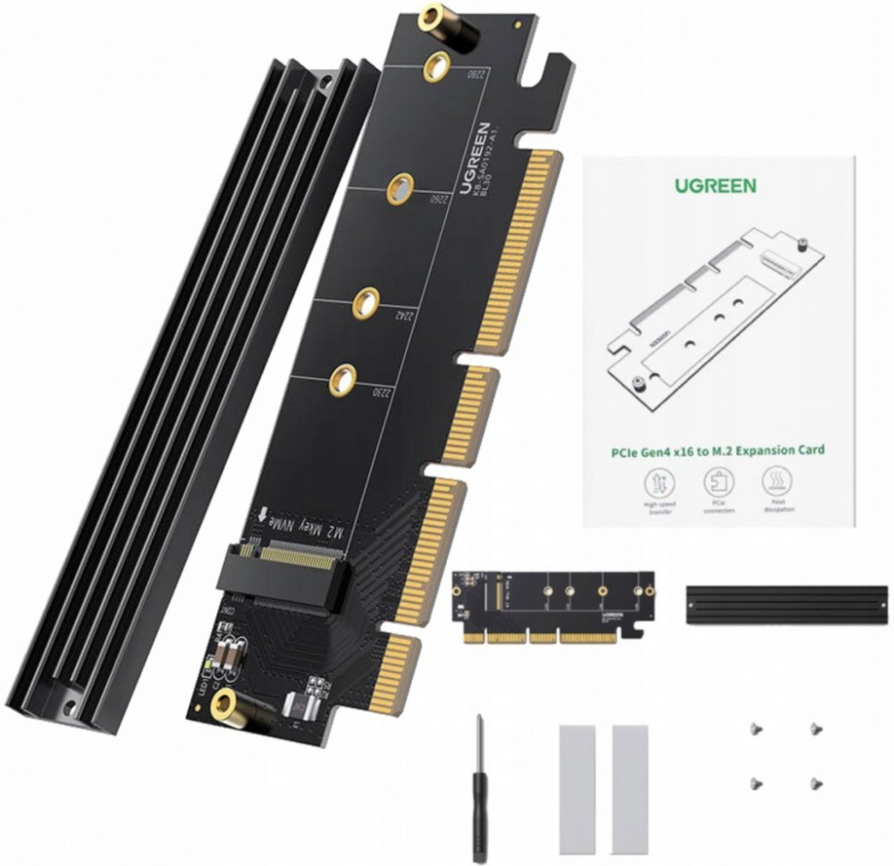 - Kompatibilita s klíčem M: Karta je přizpůsobena pro disky s klíčem M, který je nezbytný pro správné fungování s příslušenstvím.