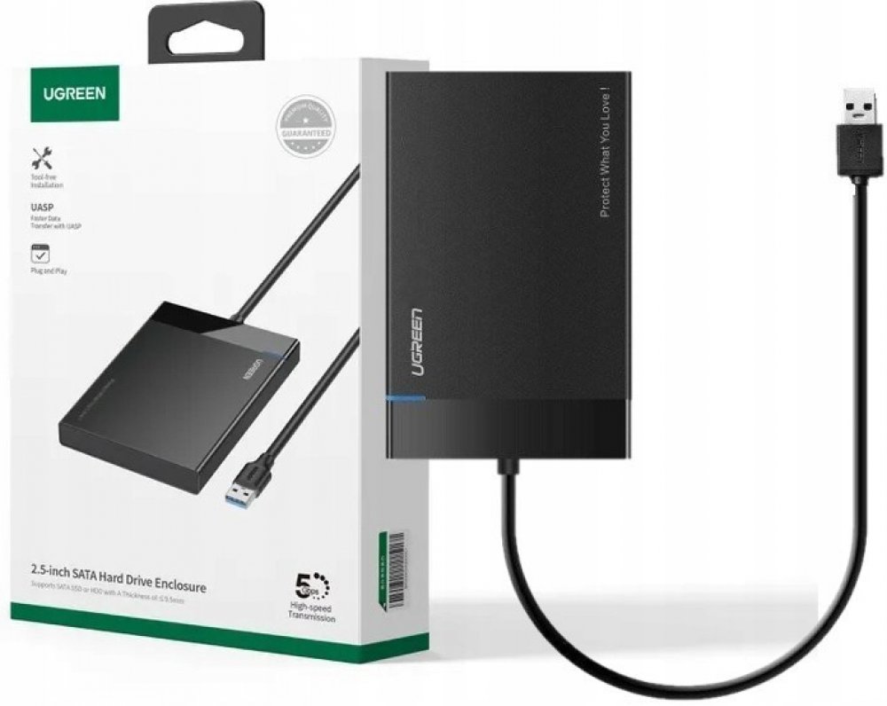 Pokud hledáte kapsu pro SSD nebo HDD 2.5'', která zajistí rychlý přenos dat – je to řešení právě pro vás. Pouzdro Ugreen ochrání váš disk a uloží obrovské množství digitálních dat – až 6 TB. K instalaci disku do kapsy nepotřebujete žádné nářadí. Instalace je rychlá a jednoduchá. Kapsu lze použít např. k televizoru, konzoli, počítači. Kapsu propojíte s externím zařízením pomocí vestavěného kabelu USB 3.0. LED dioda vás bude informovat o provozu disku.