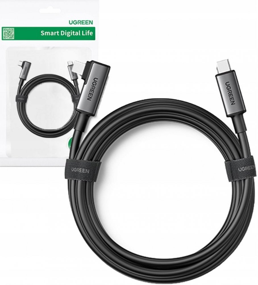 Ugreen úhlový kabel USB Typ C - USB Typ C pro nabíjení 60 W / přenos dat s podporou VR brýlí (např. Oculus Quest 2) 5 m černý (US551)